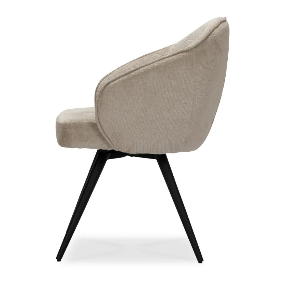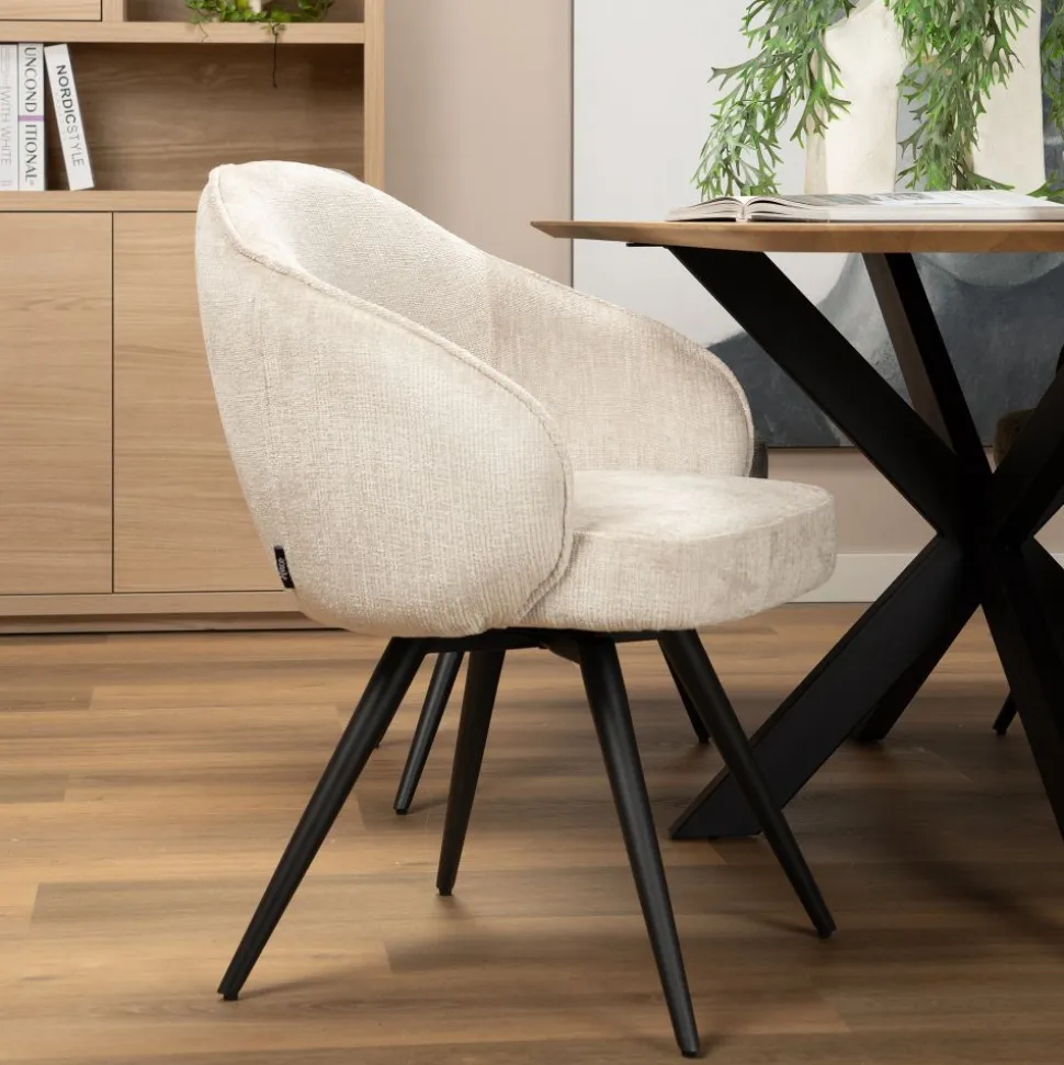 Dankzij de comfortabele zitting en de stevige rugleuning biedt de stoel uitstekende ondersteuning, tijdens lange diners of gezellige avonden. De stoel is 180 graden draaibaar, wat zorgt voor extra gemak en comfort.