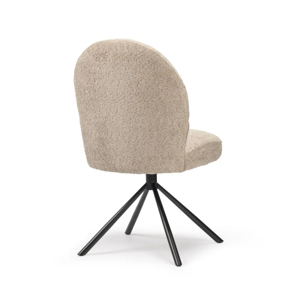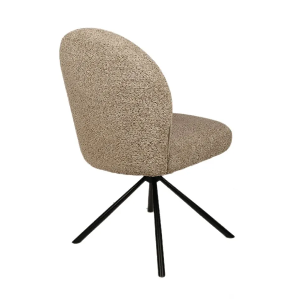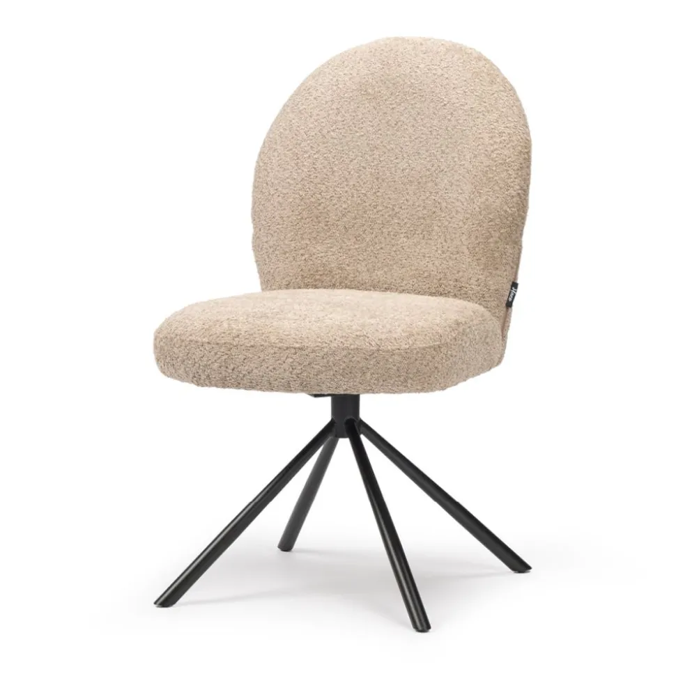 Opzoek naar een draaibare eetkamerstoel? Maak kennis met Sem! Deze stoel maakt deel uit van een collectie stoffen eetkamerstoelen, bekleed met hoogwaardige stof in de trendy kleuren naturel en taupe. Het metalen onderstel van Sem staat garant voor stabiliteit en duurzaamheid, en de ronde vormen voegen een speels element toe aan je interieur. Deze stoel is een waardevolle toevoeging aan je eetkamer!