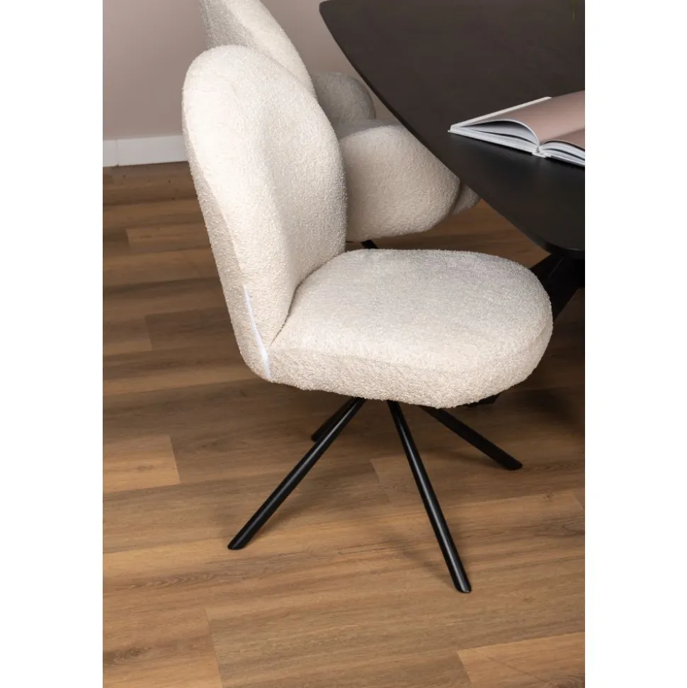 Opzoek naar een draaibare eetkamerstoel? Maak kennis met Sem! Deze stoel maakt deel uit van een collectie stoffen eetkamerstoelen, bekleed met hoogwaardige stof in de trendy kleuren naturel en taupe. Het metalen onderstel van Sem staat garant voor stabiliteit en duurzaamheid, en de ronde vormen voegen een speels element toe aan je interieur. Deze stoel is een waardevolle toevoeging aan je eetkamer!