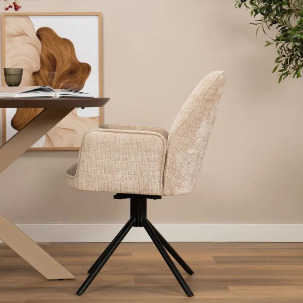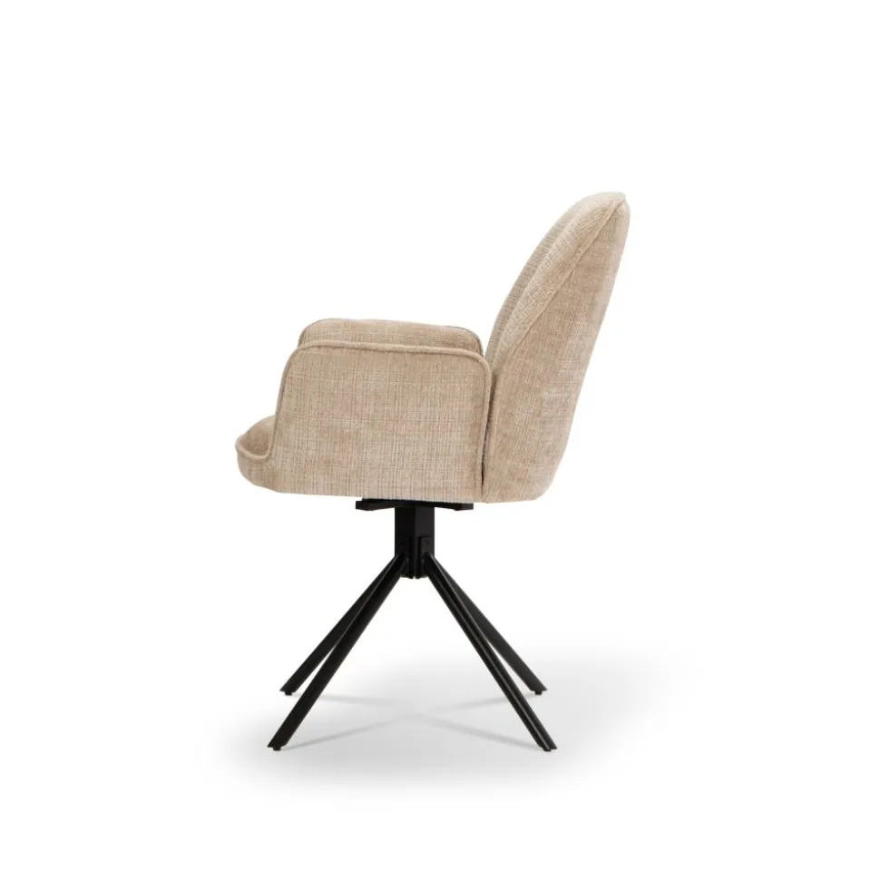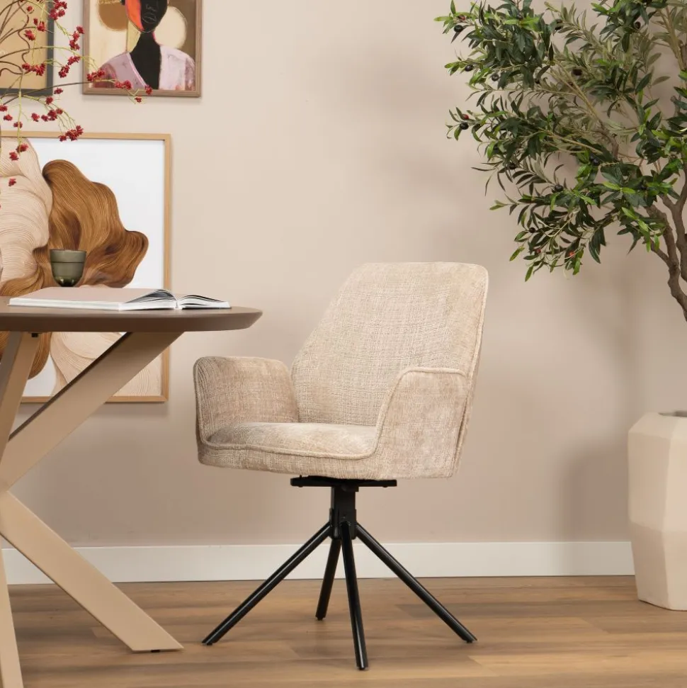 Eetkamerstoel Yuna is een moderne 180 graden draaistoel met een elegante vormgeving en een heerlijk comfortabele zitting. Deze stijlvolle eetkamerstoel is perfect voor wie op zoek is naar zowel comfort als design in één. De zachte bekleding en het strakke design maken Yuna een prachtige aanvulling voor ieder interieur.