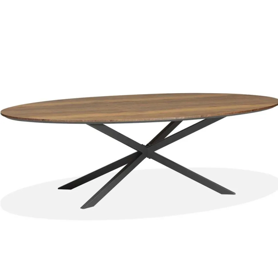 Eetkamertafel Carlijn is een moderne tafel die je zelf kunt samenstellen. De eettafel heeft een ovaal tafelblad en een stoer metalen onderstel. De tafel is verkrijgbaar in vier maten: 180, 200, 220 of 250 cm breed. Het tafelblad is leverbaar in meer dan 10 verschillende kleuren.