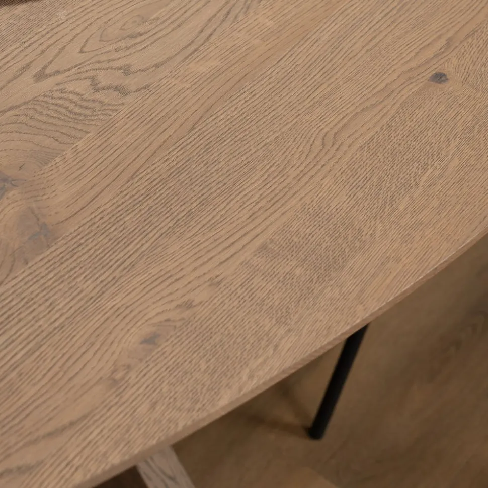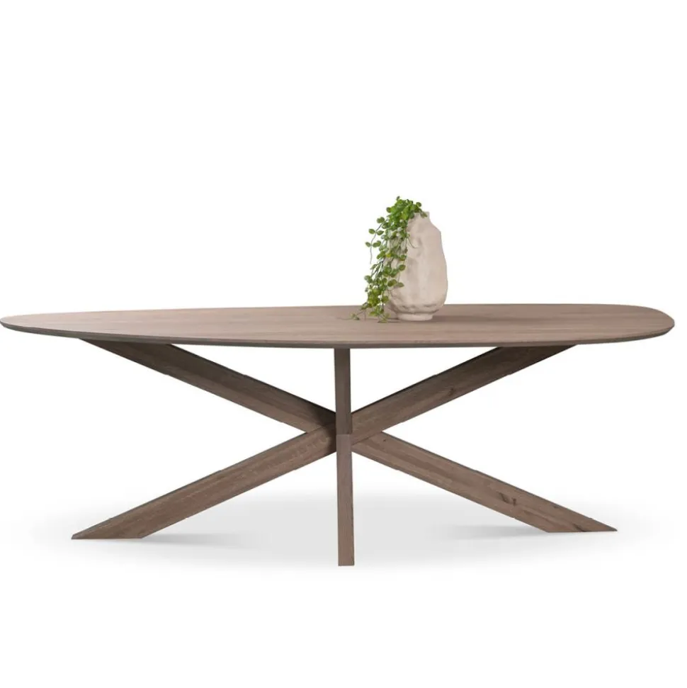 240b x 110d x 76h cm | Tafelblad: Eiken Cinnamon gelakt | Poot: Spinpoot hout Cinnamon gelakt