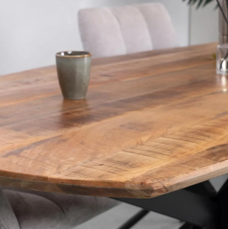 Het mango hout heeft een warme kleur en een grof patroon in houtnerf, waardoor ieder artikel een uniek meubelstuk is.