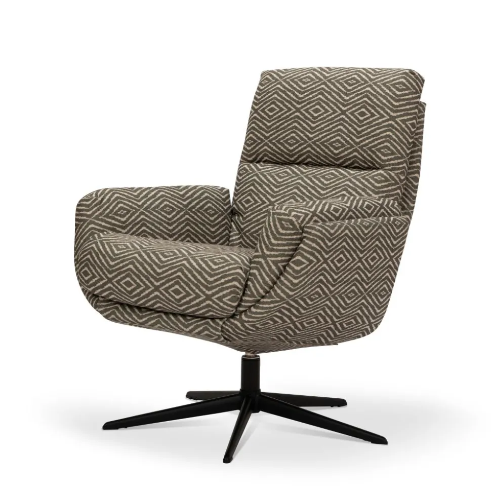Relaxfauteuil Wexford is een eigentijdse relaxfauteuil met een strak design op een stevige draaipoot. Bekleed met een zachte, hippe stof met grafisch patroon is deze stoel een echte eyecatcher in jouw interieur. Dankzij de comfortabele zit en het uitnodigende model wordt het jouw favoriete plek om te ontspannen met een goed boek, stijlvol zitten was nog nooit zo fijn.