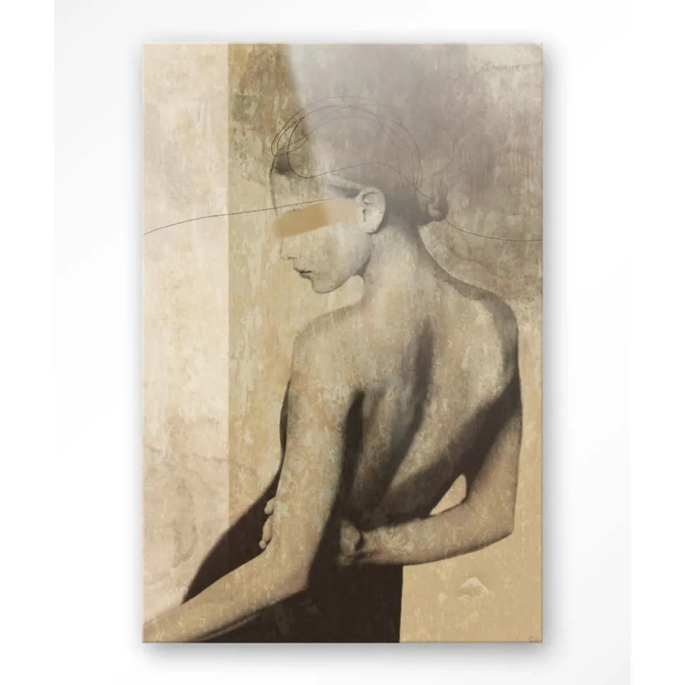 Dit schilderij toont een stijlvol vrouwelijk portret in warme aardetinten, waarin zachtheid en verfijning samenkomen. De subtiele texturen en minimalistische lijnen geven het werk een moderne, artistieke uitstraling. Een elegant kunstwerk dat rust en karakter toevoegt aan een eigentijds interieur. Uitgevoerd als glazen schilderij, wat zorgt voor een strakke uitstraling.
