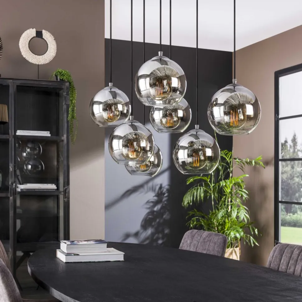 Hanglamp 4+3L bubble shaded / Oud zilver