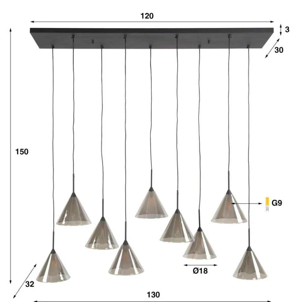 Hanglamp 5+4 tapse kap glas (G9) / Smoke grey glas