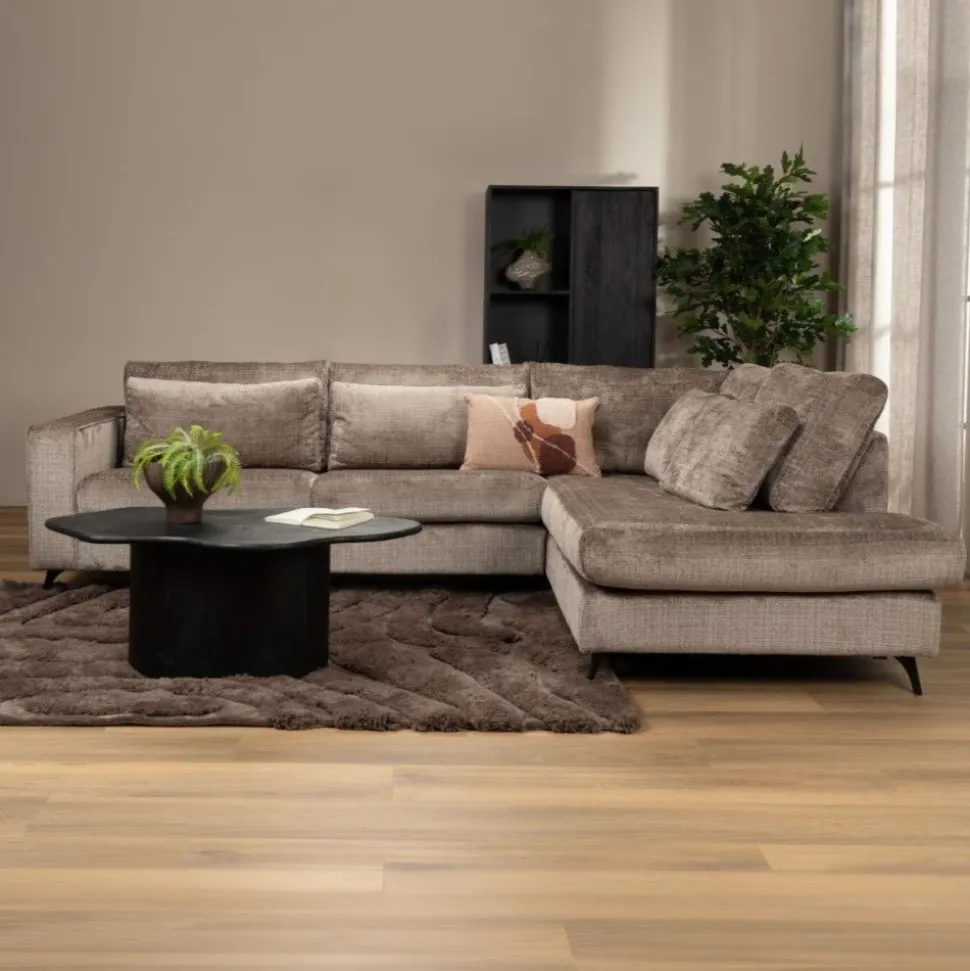 Ontdek de hoekbank Aris een perfecte mix van comfort en design. Deze bank heeft vaste zitkussens en losse, extra dikke rugkussens die zorgen voor een heerlijk zitcomfort en een moderne, strakke uitstraling.