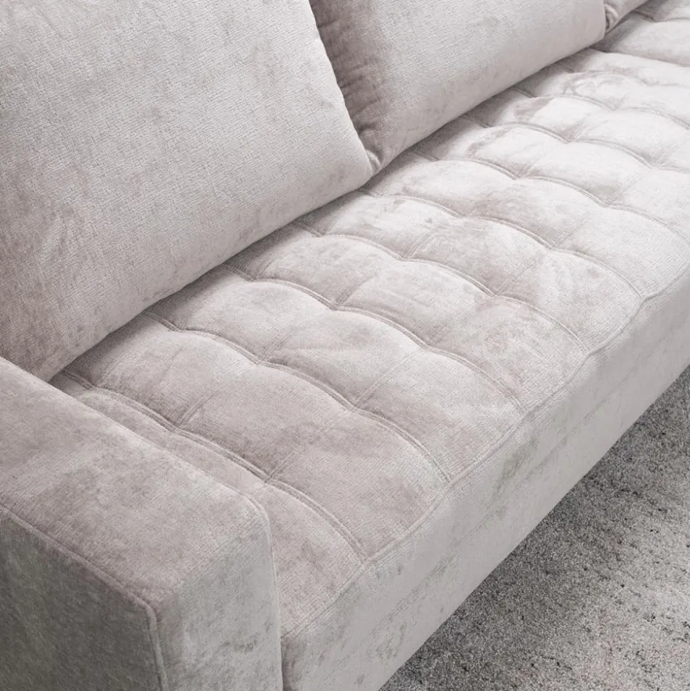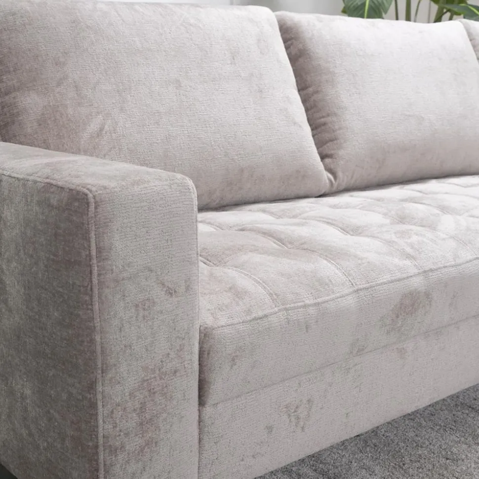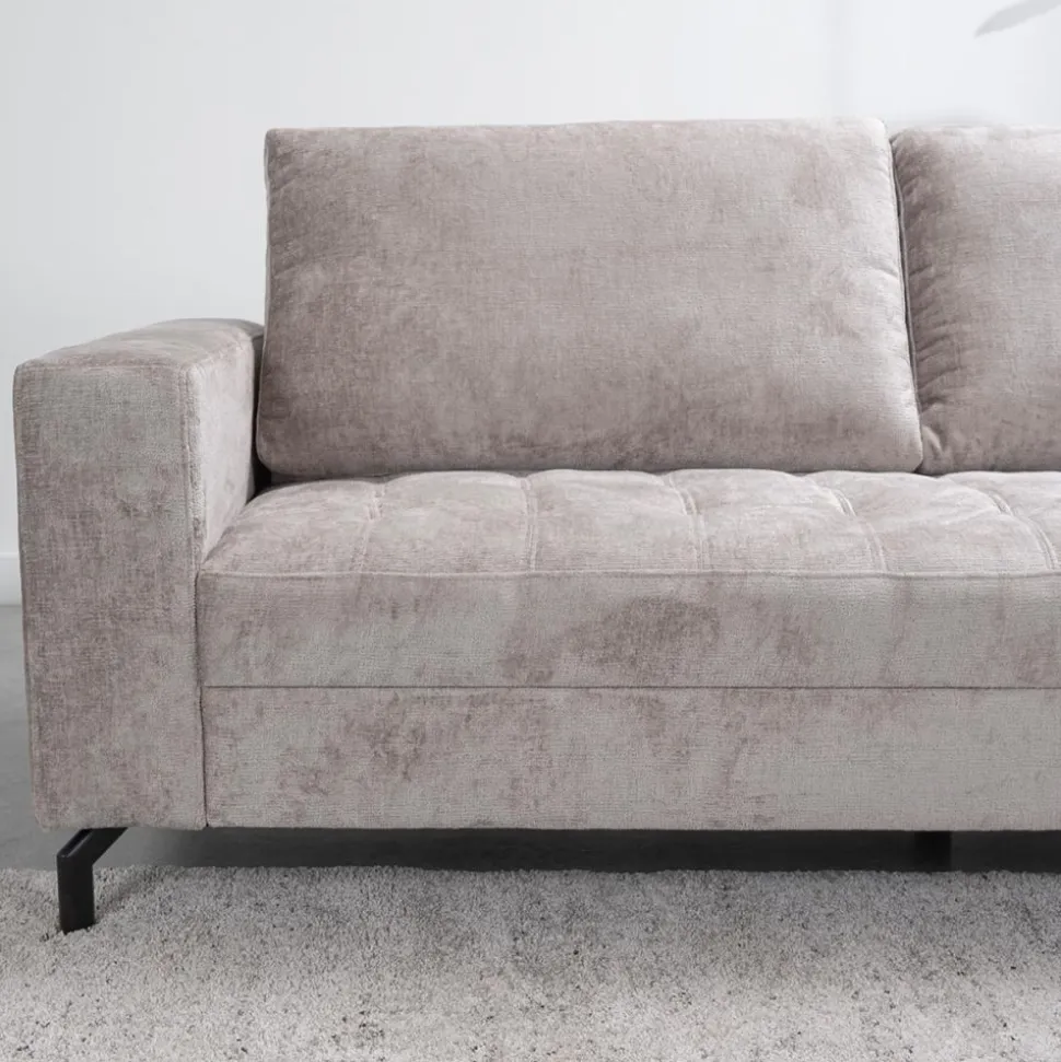 Bank Lise is een moderne bank met losse rugkussens en vaste zitkussens. De vaste zitkussens zijn carré gestikt. Tevens zorgt de microvezelstof voor een vuil- en waterafstotend effect waardoor eventuele vlekken gemakkelijk te reinigen zijn. De pootjes zijn uitgevoerd in zwart metaal.