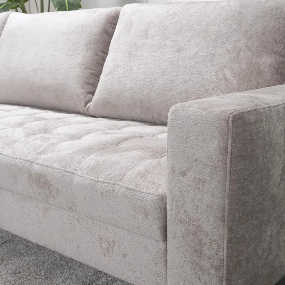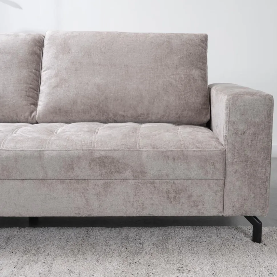 Bank Lise is een moderne bank met losse rugkussens en vaste zitkussens. De vaste zitkussens zijn carré gestikt. Tevens zorgt de microvezelstof voor een vuil- en waterafstotend effect waardoor eventuele vlekken gemakkelijk te reinigen zijn. De pootjes zijn uitgevoerd in zwart metaal.