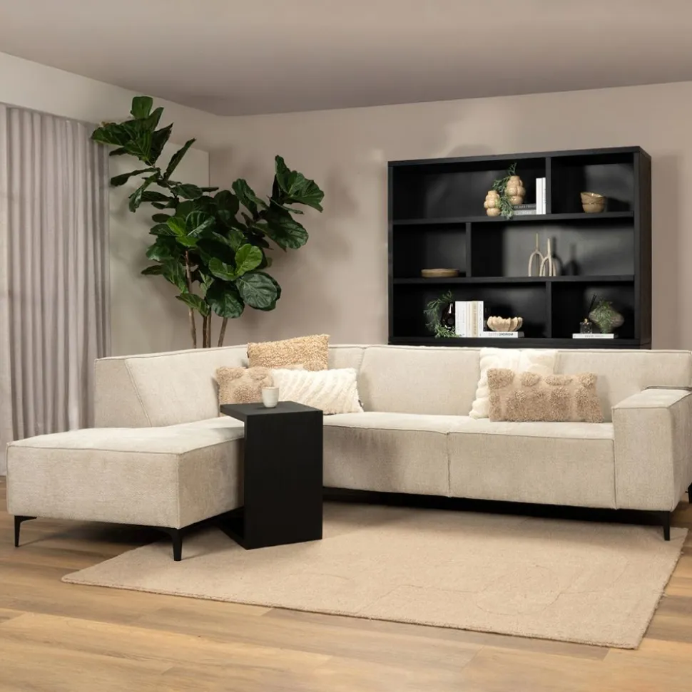 Puck is een prachtige, moderne hoekbank met een lekkere diepe zitting. De bank is uitgevoerd in de populaire stof Retro Bliss. De bank is voorzien een brede armleuning en staat op metalen pootjes die zwart van kleur zijn.