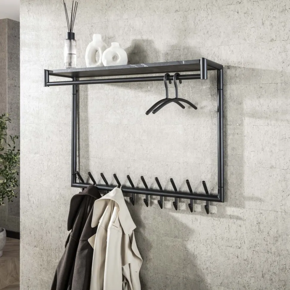 Kapstok 20 haaks hoog roede-hoedenplank / 3D zwart bruin