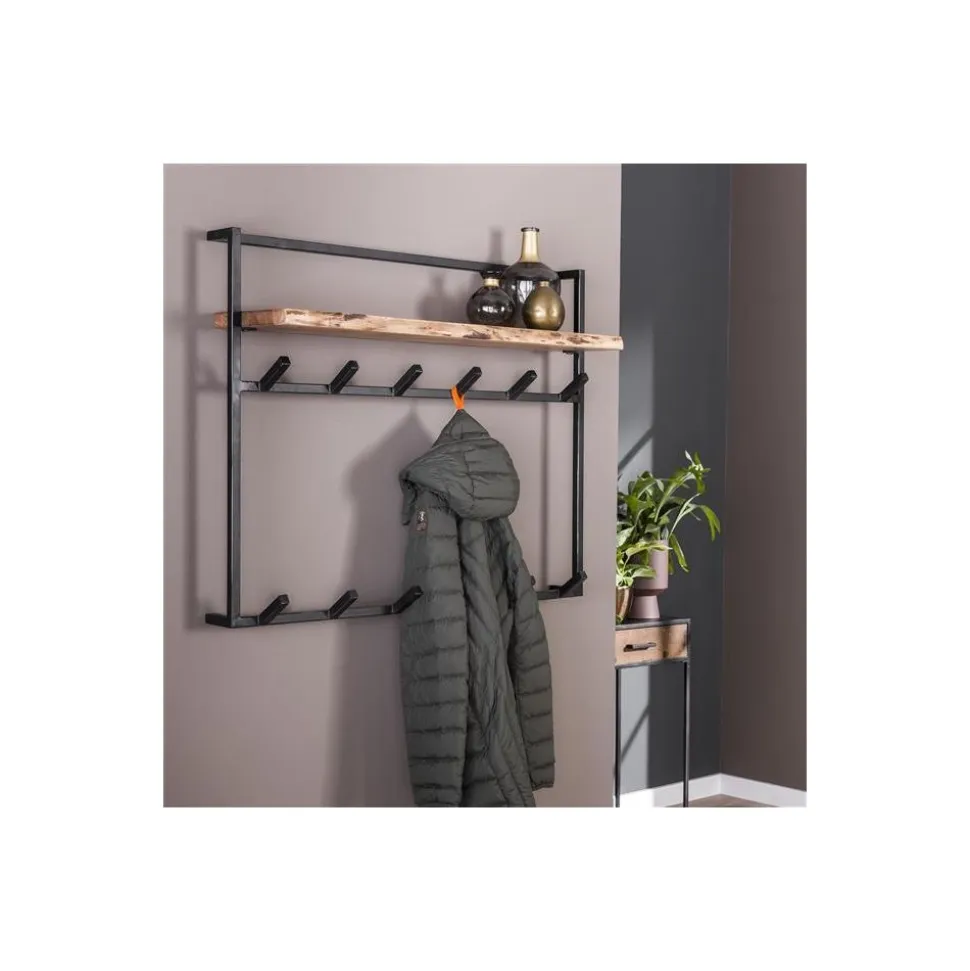 Kapstok air solid 12 haken hoedenplank / Massief acacia naturel