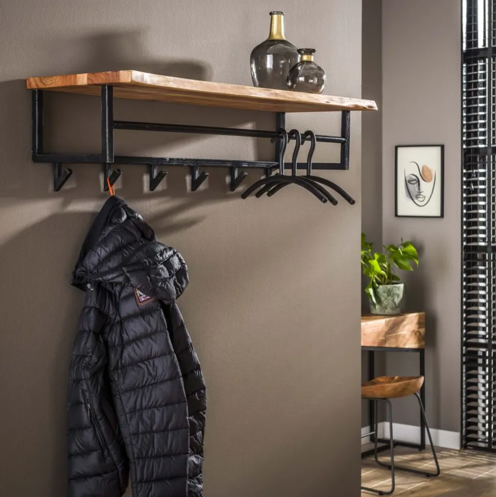 Kapstok edge 6 haken hoedenplank / Massief acacia naturelDit product is onderdeel van onze WEB ONLY serie. Deze serie is alleen verkrijgbaar in onze webshop en staat niet in onze showrooms