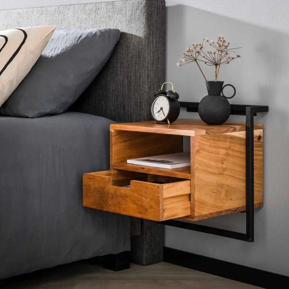 Nachtkastje 1L open vak air solid / Massief acacia naturel