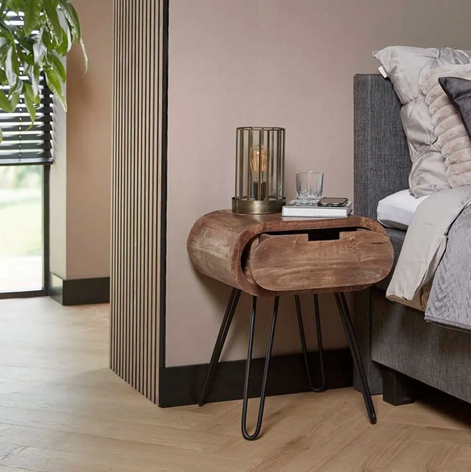 Nachtkastje barrel 1L / Massief mango zandkleur