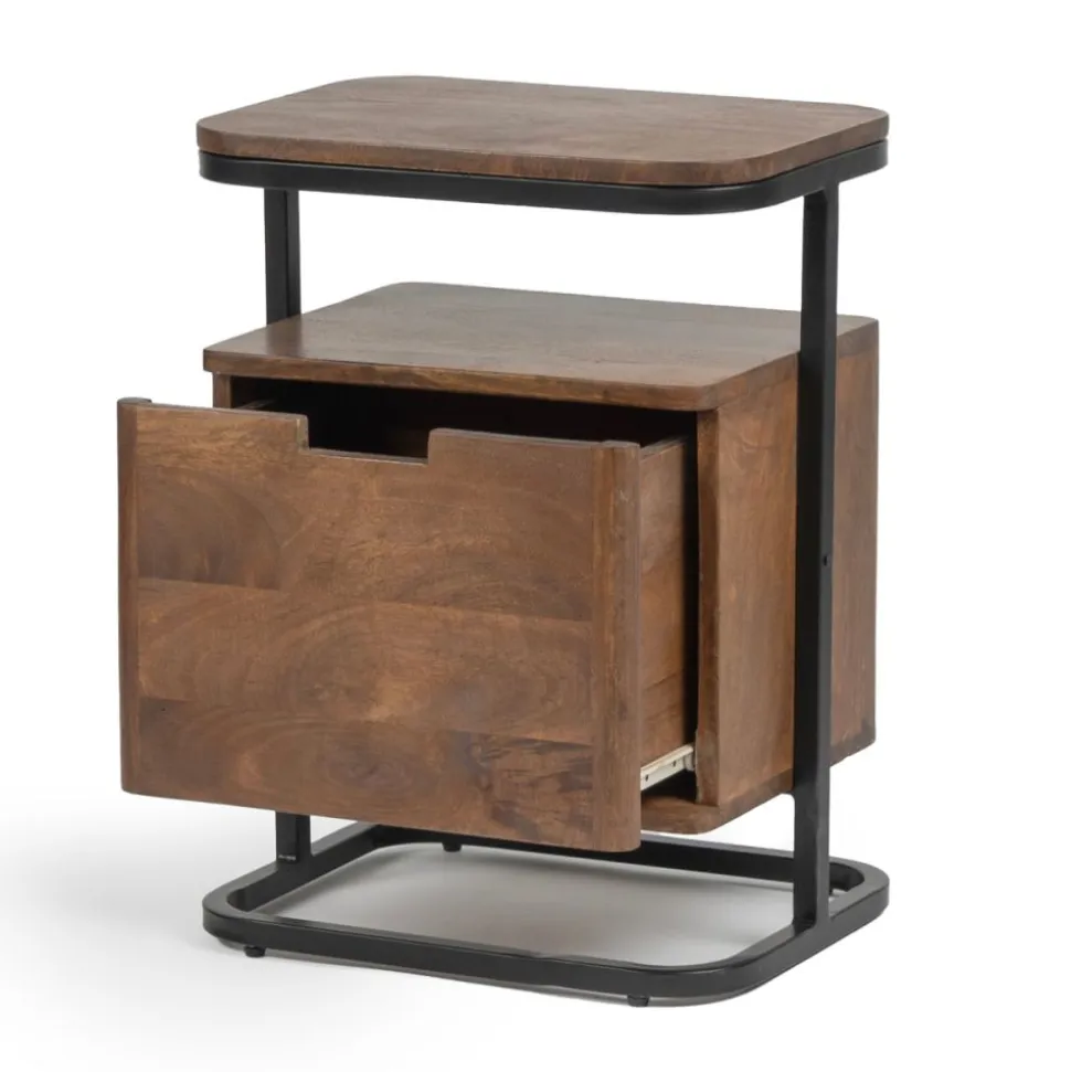 Dit gave nachtkastje Jaimy met 1 diepe lade is prachtig afgewerkt en lekker praktisch naast je nieuwe boxspring. De lade heeft een inkeping, waardoor je hem makkelijk open en dicht kunt doen. Het nachtkastje heeft een stijlvol ontwerp en staat op een stevig, metalen onderstel. Verkrijgbaar in twee kleuren: bruin en zwart.