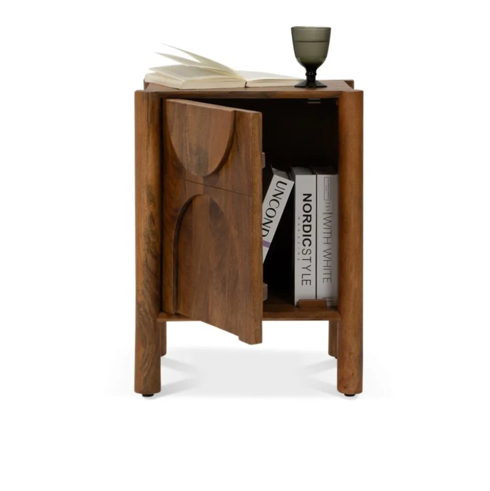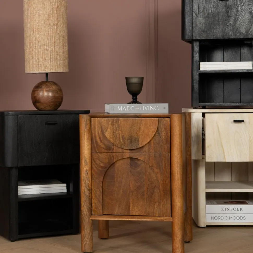 Op zoek naar een nachtkastje met karakter? Nachtkastje Murcia is een echte eyecatcher in jouw slaapkamer! Gemaakt van massief mango hout straalt dit kastje warmte en sfeer uit. Het robuuste hout in combinatie met het unieke design, met afgeronde vormen en speelse, ronde poten geeft Murcia een moderne en stoere uitstraling.
