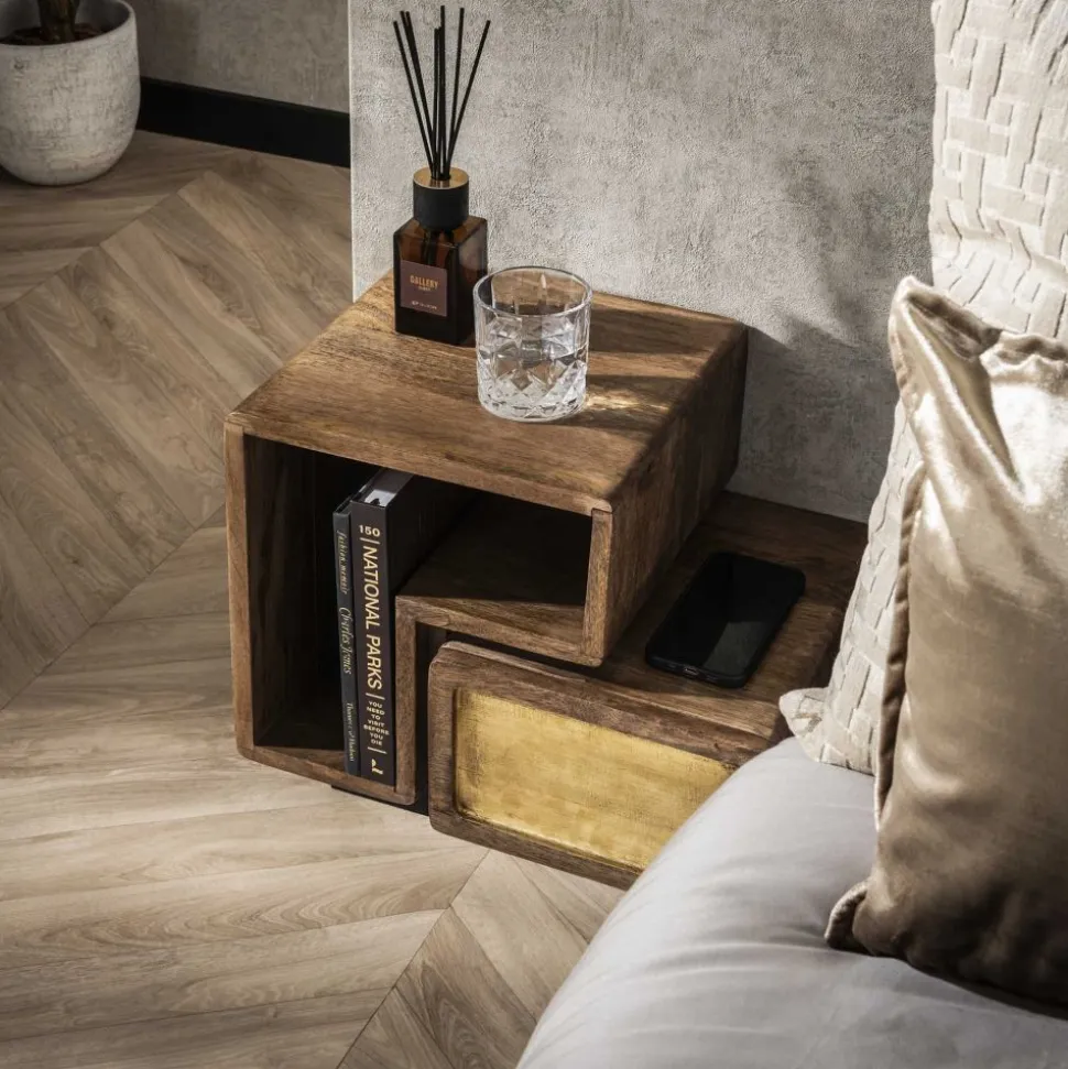 Nachtkastje Set/2 brass / Massief mango zandkleur