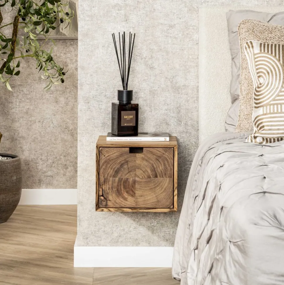 Nachtkastje 1L block zwevend / Massief acacia naturel