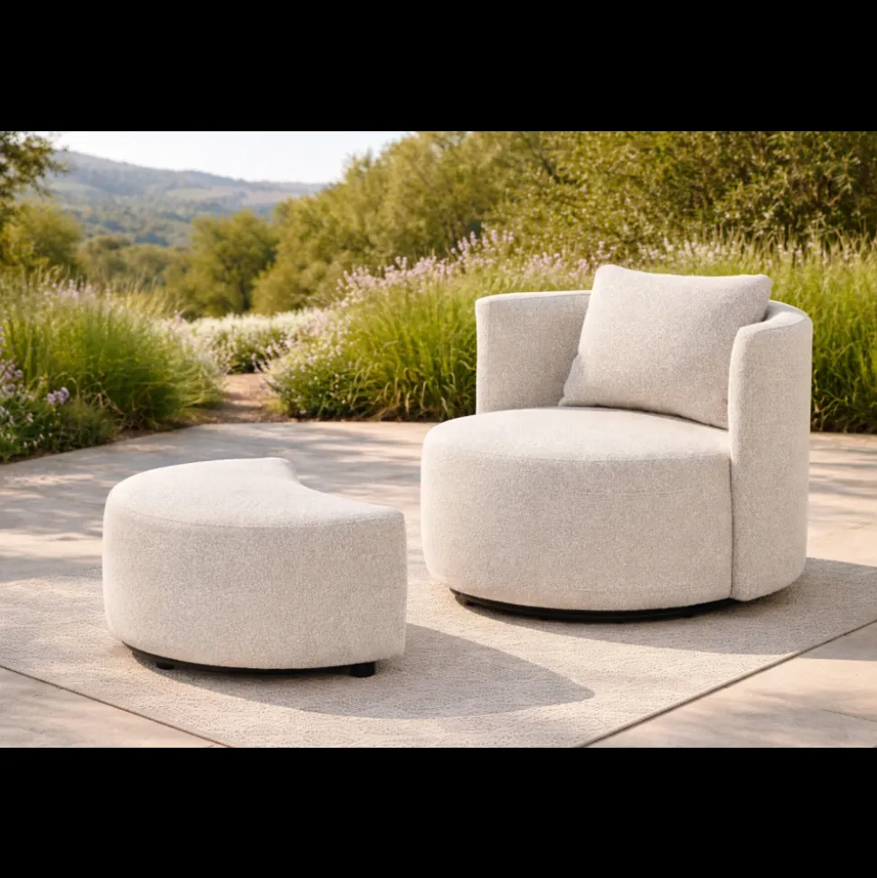 Poef Cleo is de perfecte aanvulling op stoel Cleo. Met deze bijpassende poef creëer je eenvoudig extra comfort, zodat je heerlijk je voeten kunt laten rusten tijdens het ontspannen in de tuin of op het terras. Dankzij het zachte, ronde ontwerp sluit de poef mooi aan bij de uitstraling van de stoel.