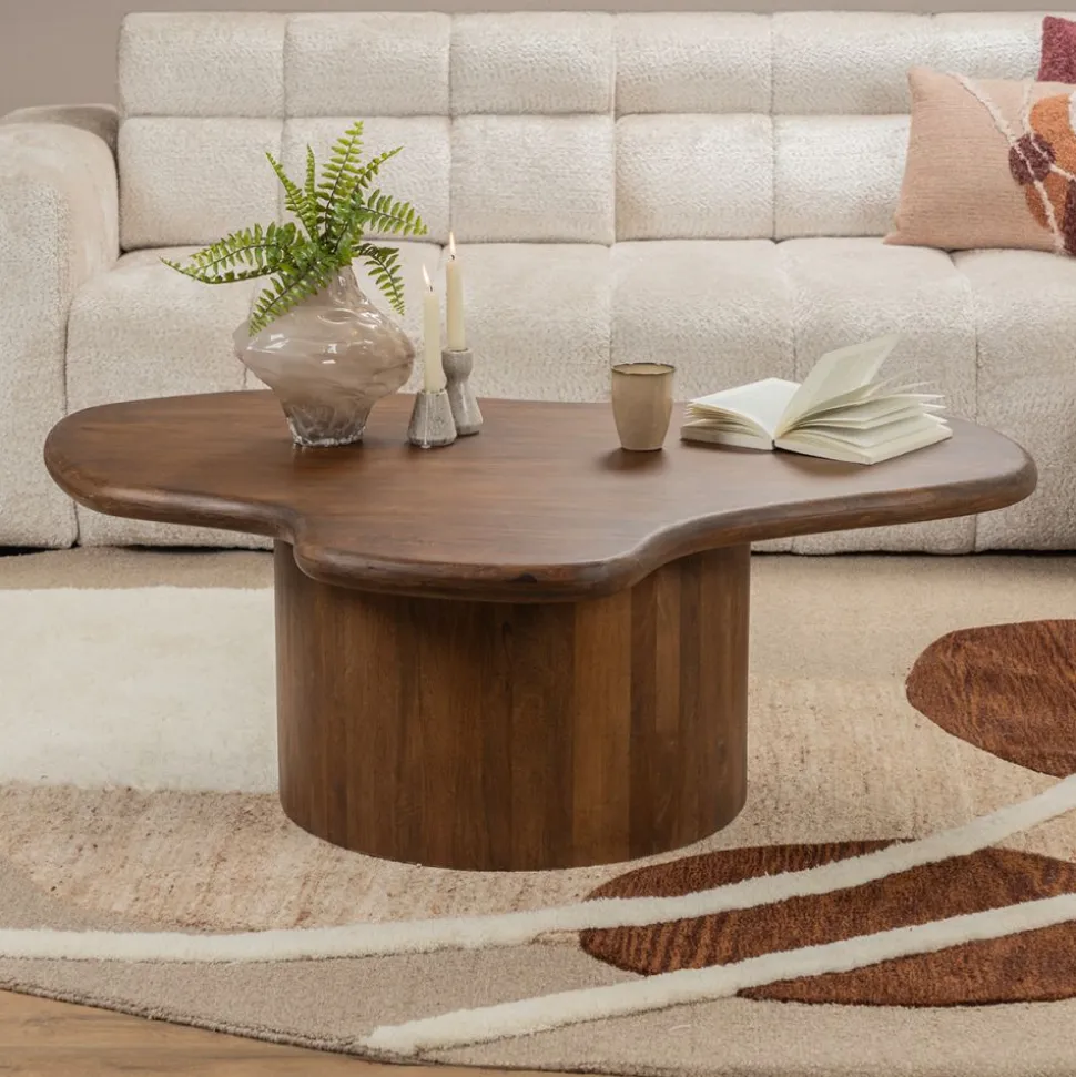 Maak kennis salontafel Ruby: een prachtig mango houten salontafel met organische vorm. Verkrijgbaar in twee maten en twee warme kleuren bruin en zwart. Dit meubelstuk biedt een unieke mix modern, kwaliteit en verfijnd design, perfect voor elk interieur. Laat je verrassen door ons vakmanschap en geef je woonkamer een vleugje klasse met Ruby. Leuk om te combineren met de eettafel en sidetable Ruby!