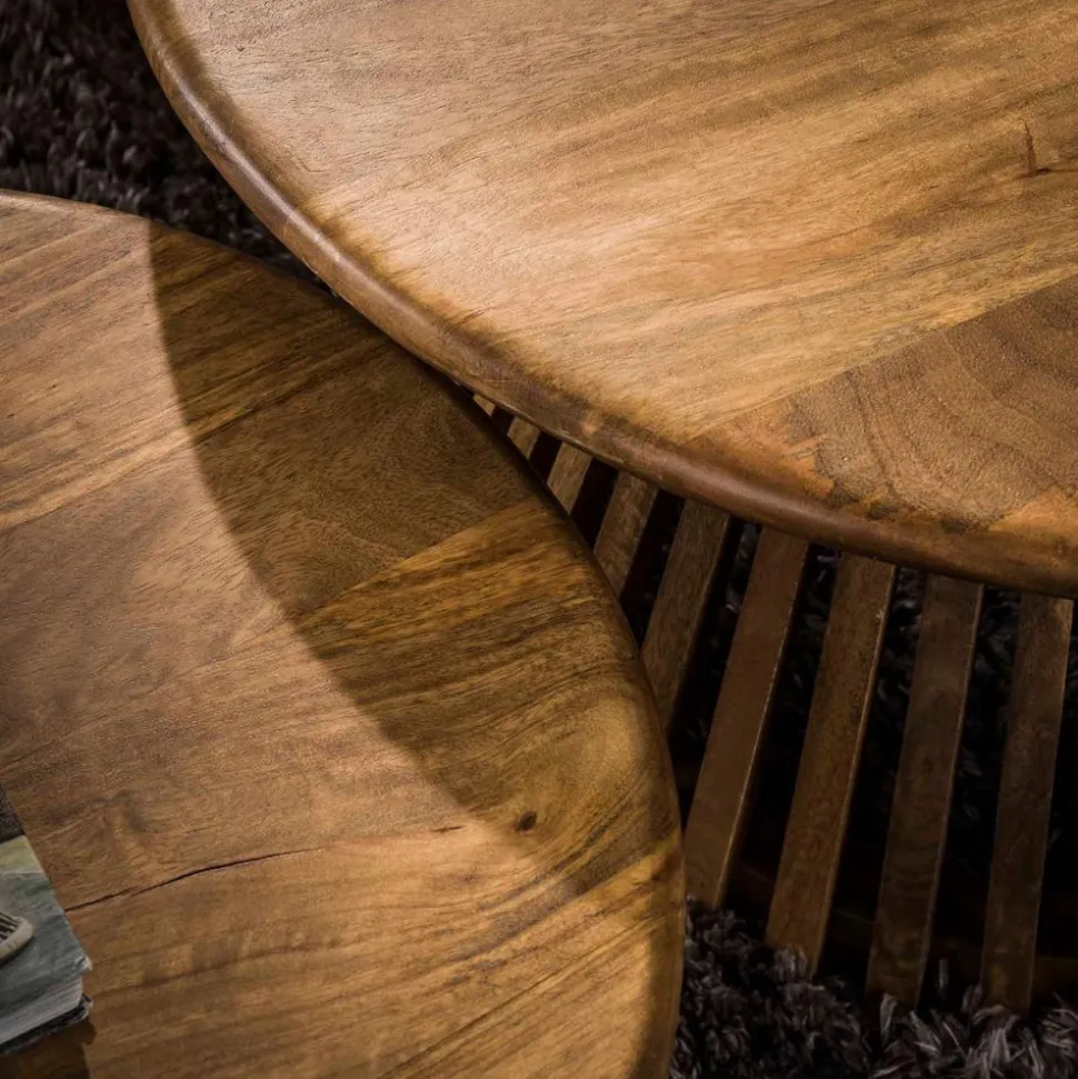 Salontafel set/2 tweak conisch / Massief mango zandkleur
