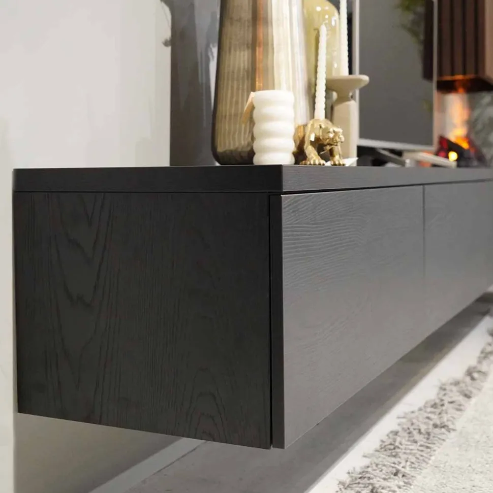 TV-meubel Alessio 320 cm incl. sfeerhaard & schouw (71b x 32d x 155h cm)
