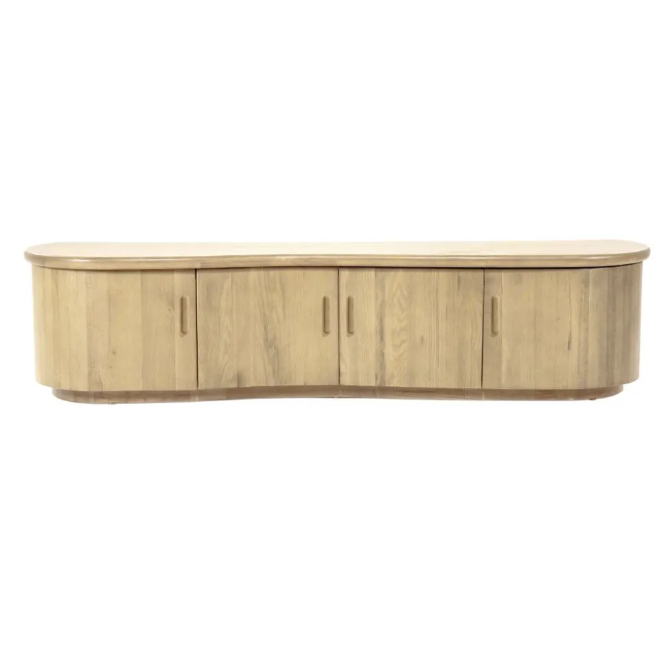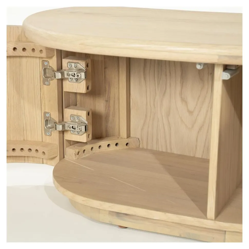 TV meubel Josh schittert door zijn natuurlijke uitstraling, mede dankzij de combinatie van massief eiken en hoogwaardig eikenfineer. De subtiele golfvorm in de voorzijde geeft het TV meubel een elegante, vloeiende uitstraling die direct opvalt in elke woonkamer.