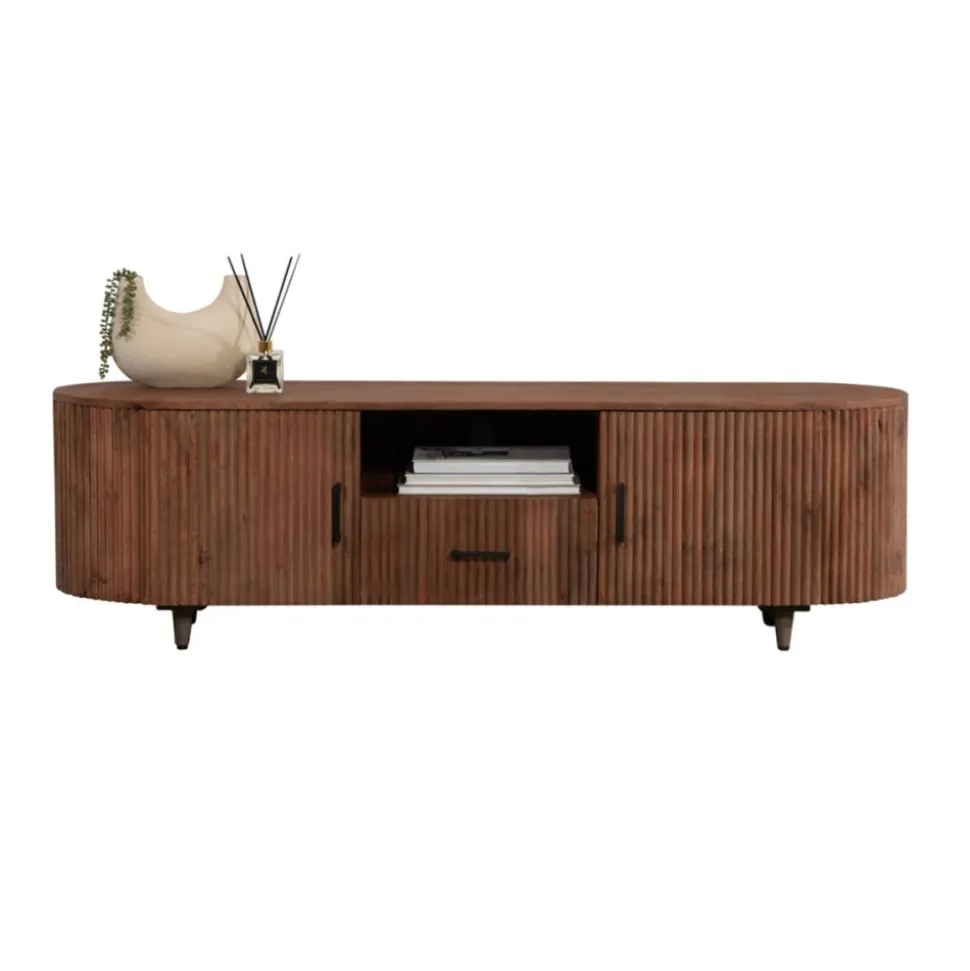 Het mangohout heeft een warme kleur en een grof patroon in houtnerf, waardoor ieder artikel een uniek meubelstuk is.