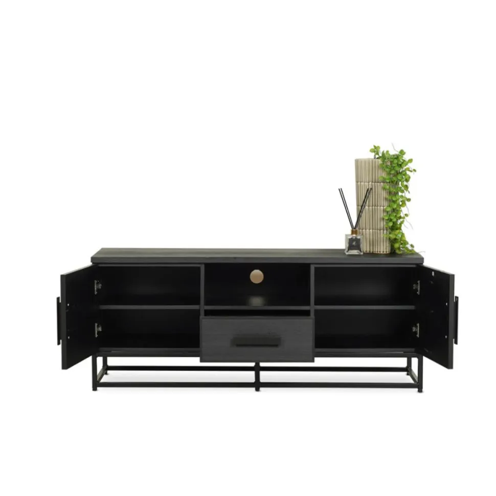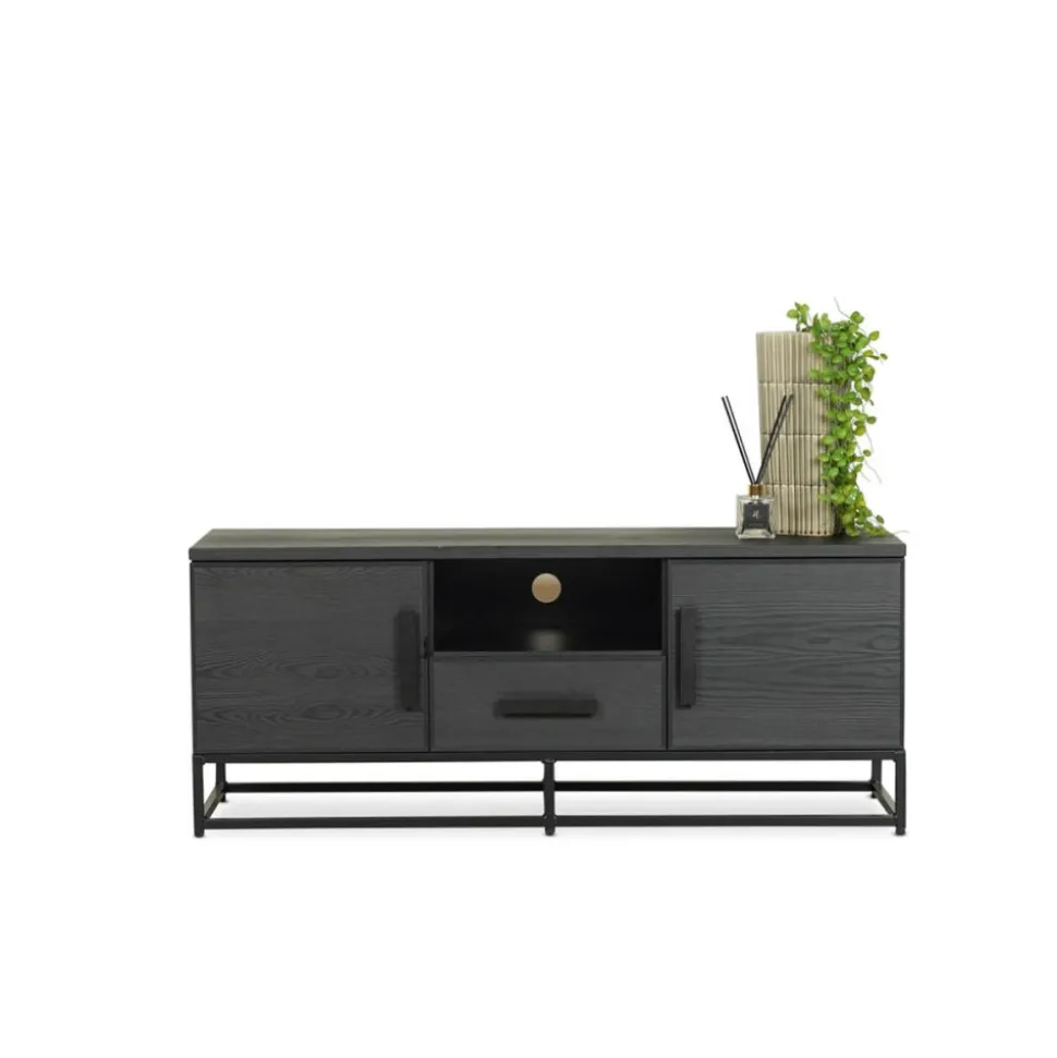 Dit is onderdeel van woonserie Newton. Deze prachtige woonserie is vervaardigd uit fineer en grenen hout in de kleur grenen zwart. Tevens is de gehele serie ook in eikenhout verkrijgbaar, vraag hiervoor in de winkel naar de mogelijkheden. Deze woonserie is snel leverbaar en heeft een ruime keuze betreft kasten, tv-meubels en tafels zodat u uw woonkamer naar eigen wens kunt inrichten. Haal de natuur in huis met de woonserie Newton.