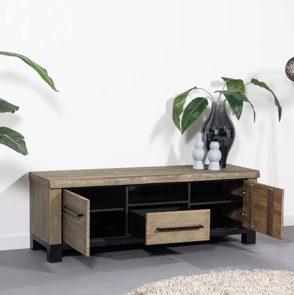 Uniek in Nederland en exclusief verkrijgbaar bij Haco wonen & slapen. Dit is onderdeel van de Woonkamer serie Rough met boomstam afwerking! Deze unieke woonserie is uitgevoerd in massief grenen in de kleur old pine. Door de grove afwerking met een dikte van 5 cm zijn duidelijk de contouren van een boomstam te zien. Deze karakteristieke afwerking maakt ieder meubel uniek. Het zware metalen onderstel zorgt voor een stoere en robuuste uitstraling. Een schitterend natuurproduct dat goed past in een rustiek of modern interieur.