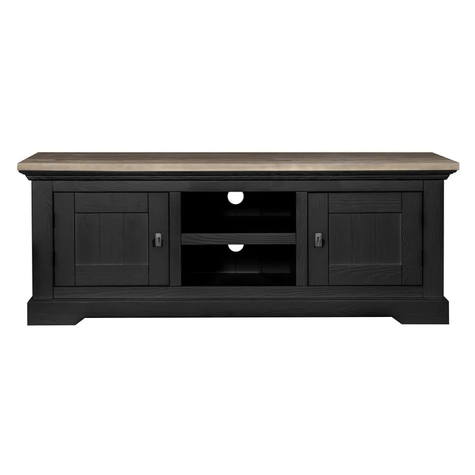 Dit artikel is onderdeel van woonserie Toulouse. De serie is vervaardigd van massief grenenhout in de kleur Old Pine Dark en zwart geverfd en voorzien van een bruin bovenblad. De handgrepen zijn netjes ingefreesd en de deurtjes van deze woonkamer meubelen zijn voorzien van een slot met sleutel. Deze serie past in een landelijk of modern interieur.