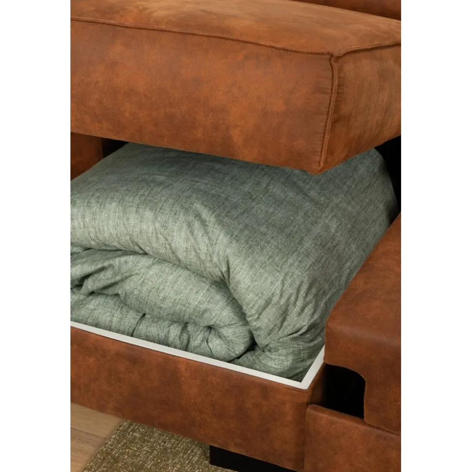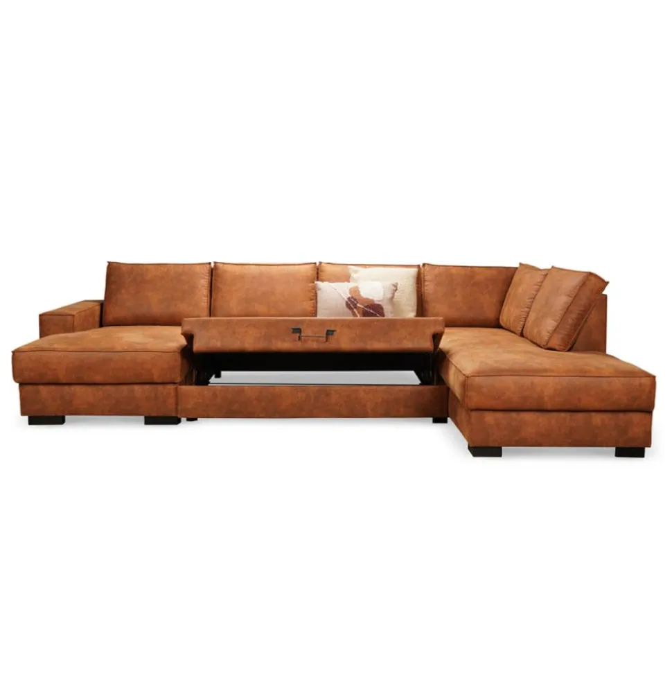 Marly is een heerlijke hoekbank met diverse mogelijkheden. De bank is uitgevoerd in een mooie stof die gemakkelijk te onderhouden is. Met deze luxe u-bank heeft iedereen in het gezin een lekker plekje op deze bank. Of je graag wil zitten, liggen of loungen. Het loungegedeelte kan omhoog geklapt worden waardoor er opbergruimte ontstaat. En onder het middelste zitgedeelte kan er een deel uitgetrokken worden, waardoor je met je benen lekker languit kunt liggen en zelfs kunt slapen. De fantastische kleur maakt deze bank helemaal af!