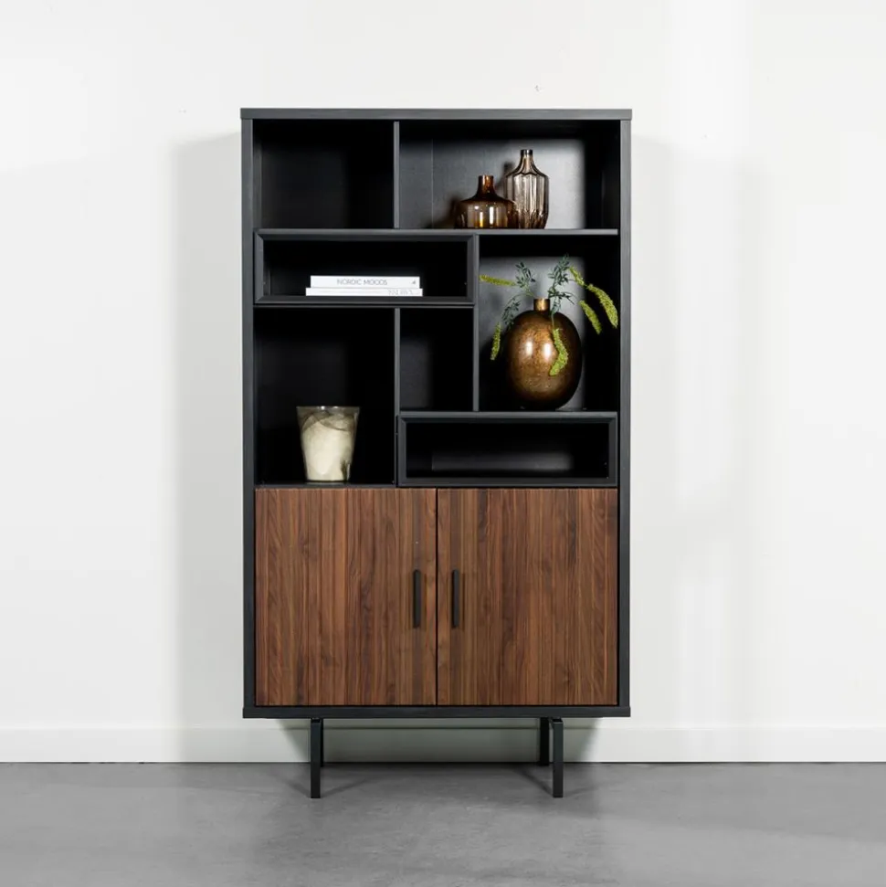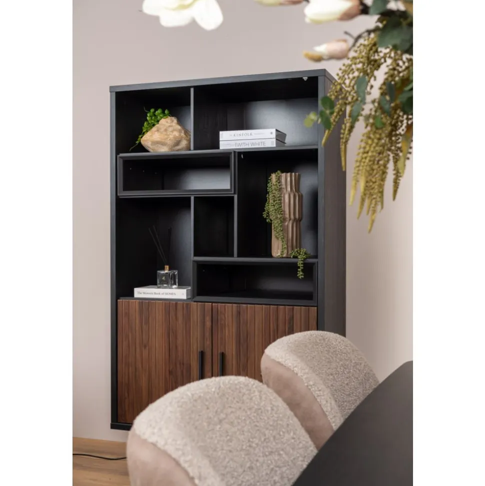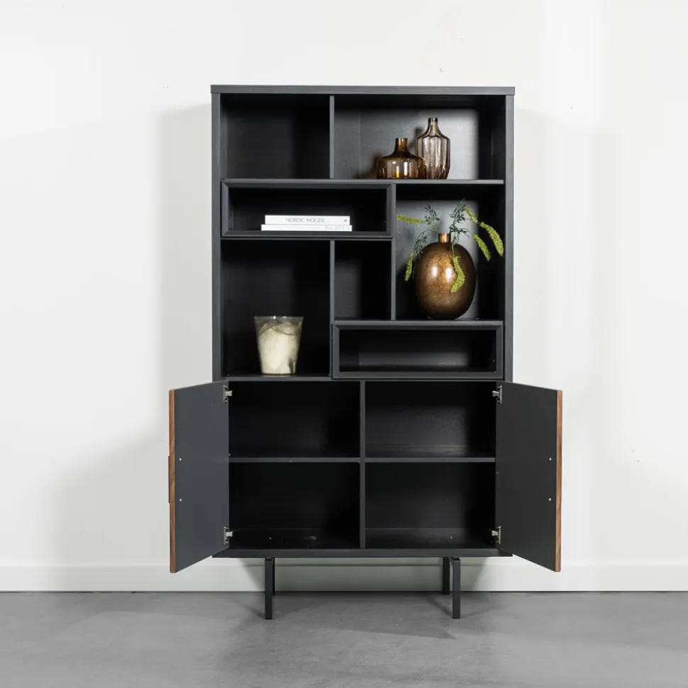 Met de gave woonserie Bilbao ga je voor topkwaliteit en de woontrend van nu! De meubels uit deze trendy serie hebben een zwarte buiten- en binnenkant en staan op een metalen onderstel. De lades en deurtjes zijn bruin van kleur en voorzien van een gaaf rib effect en subtiele, smalle handgrepen. Combineer de kasten en tafels met elkaar en creëer een sfeervol gehaal in jouw woonkamer!