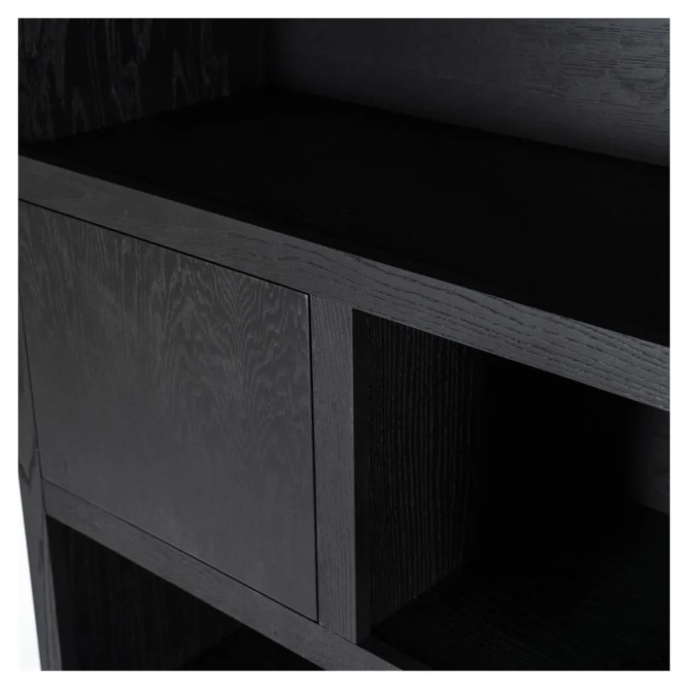 De indeling is overzichtelijk en functioneel: de open vakken bieden ruimte om decoratie, boeken of favoriete items mooi te presenteren, terwijl de vakken met deuren ideaal zijn om spullen netjes en uit het zicht op te bergen. Zo creëer je een perfecte balans tussen tonen en organiseren.