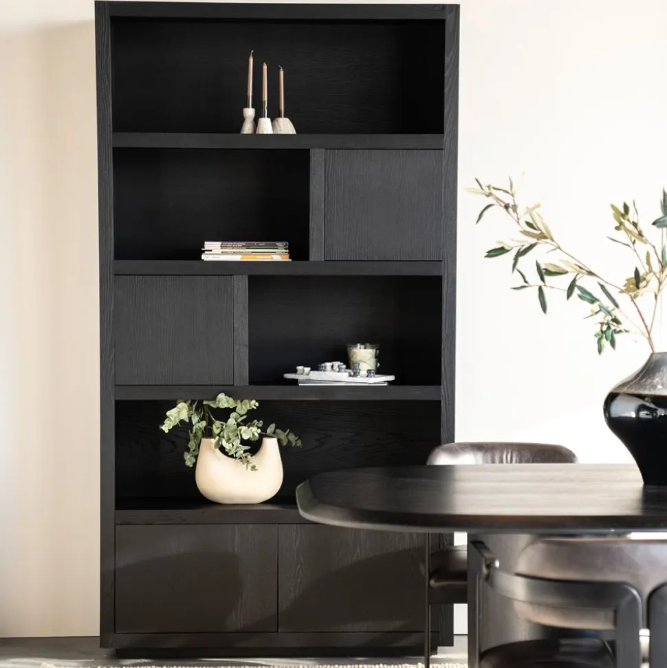De indeling is overzichtelijk en functioneel: de open vakken bieden ruimte om decoratie, boeken of favoriete items mooi te presenteren, terwijl de vakken met deuren ideaal zijn om spullen netjes en uit het zicht op te bergen. Zo creëer je een perfecte balans tussen tonen en organiseren.
