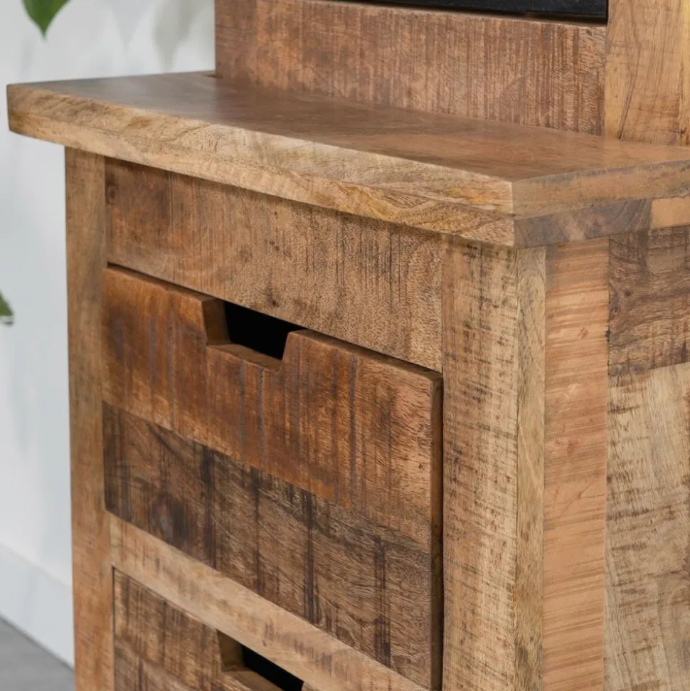 Het mango hout heeft een warme kleur en een grof patroon in houtnerf, waardoor ieder artikel een uniek meubelstuk is.