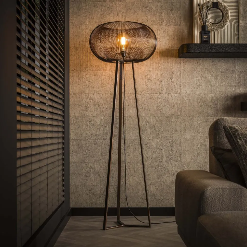Vloerlamp 3-poot copper twist / Zwart nikkel