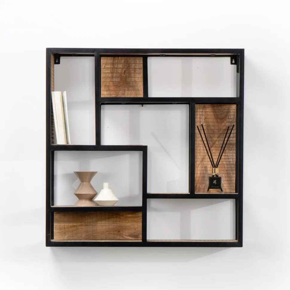 Verfraai uw muur nu met dit schitterende wandrek Sandro. Vervaardigd van zwart metaal gecombineerd met mangohout. Een stoer wandrek dat door de diepte van 18 cm eenvoudig te decoreren is. Dit vierkante wandrek past makkelijk bij de rest van je interieur.